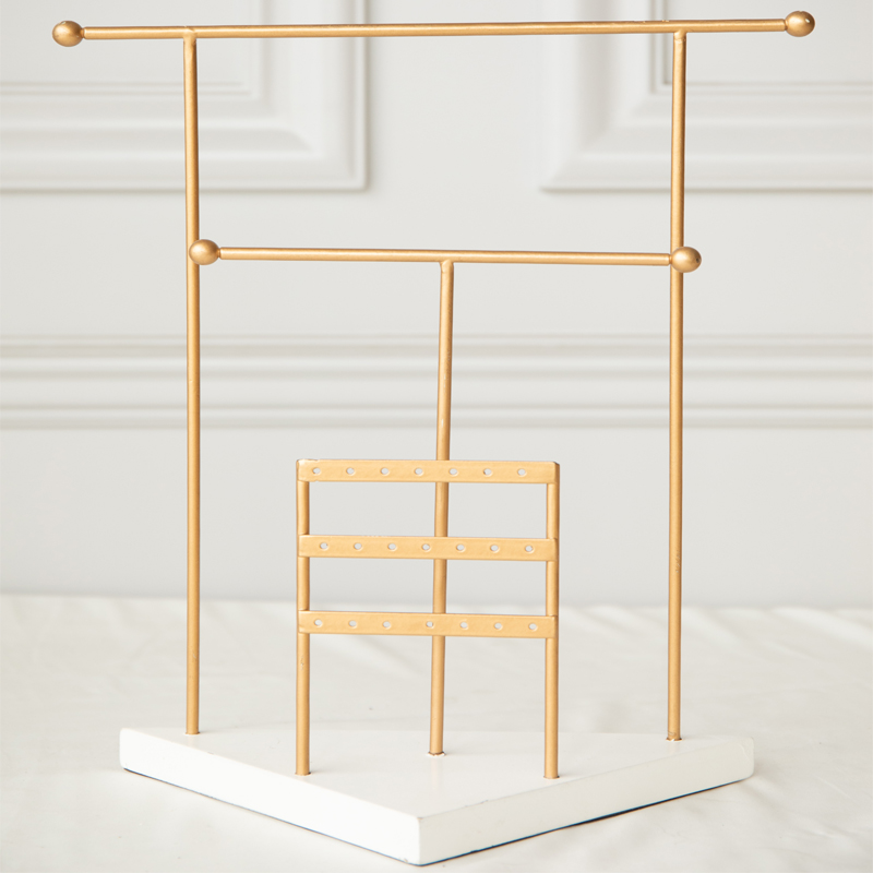 DESIGN MODERNO: O suporte de joias usa materiais inesperados para criar um organizador de joias moderno que é tão bonito quanto funcional. Com postes de metal chapeados e uma base de resina ponderada, certamente causará impacto onde quer que você o exiba